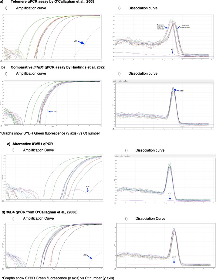 | Comparative Telomere and IFNB1 qPCR no plasmid | Telomere qPCR with plasmid | Comparative IFNB1 qPCR with plasmid | Alternative IFNB1 qPCR with plasmid | 36B4 (RPLP0) qPCR with plasmid | |