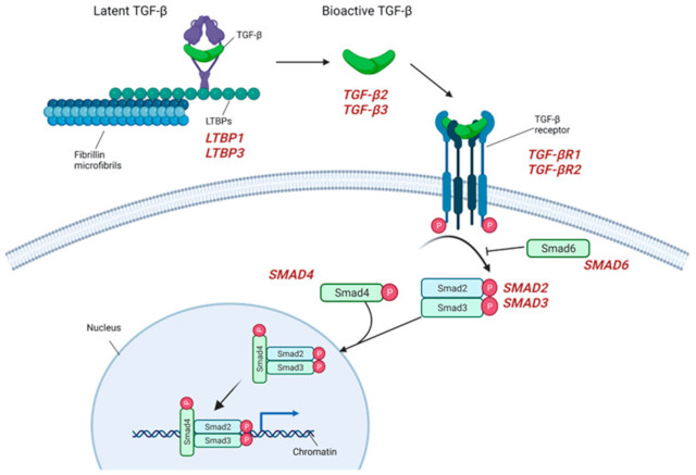 主动脉瘤传统上根据主动脉外临床表现的存在(综合征性胸主动脉瘤)或不存在(非综合征性胸主动脉瘤)进行划分。综合征型主动脉瘤患者的全身特征反映了结缔组织疾病的存在,例如马凡综合征 (MFS)、Loeys-Dietz 综合征 (LDS)、血管 Ehlers-Danlos 综合征 (vEDS) 和动脉迂曲综合征。二尖瓣主动脉瓣 (BAV) 是另一种常见的与主动脉瘤相关的疾病,目前被认为是其发展的独立危险因素,在某些情况下主动脉扩张,即使存在正常功能的 BAV 和/或不管体力活动,正如贼近在儿科患者中评估的那样。非综合征性主动脉瘤占所有主动脉瘤病例的 95%,如果至少有一个一级家庭成员受到影响,则进一步分类为散发性或家族性。主动脉瘤的不同表现在扩张发育的分子病理生理学(受损的细胞外基质 (ECM))、胶原蛋白稳态、TGF-β 信号通路的改变、平滑肌和细胞骨架装置的破坏方面具有相似之处,即使外显率不同,遗传力显着。