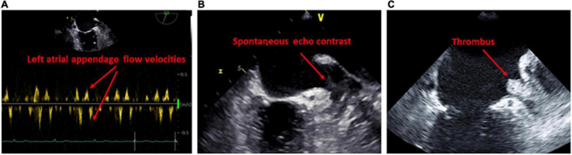 超声心动图参数异常、左心耳 SEC 和血栓、AF 负担、年龄