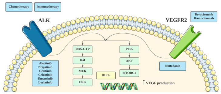 图 2:VEGF 和 ALK 通路的抑制和潜在的相互影响